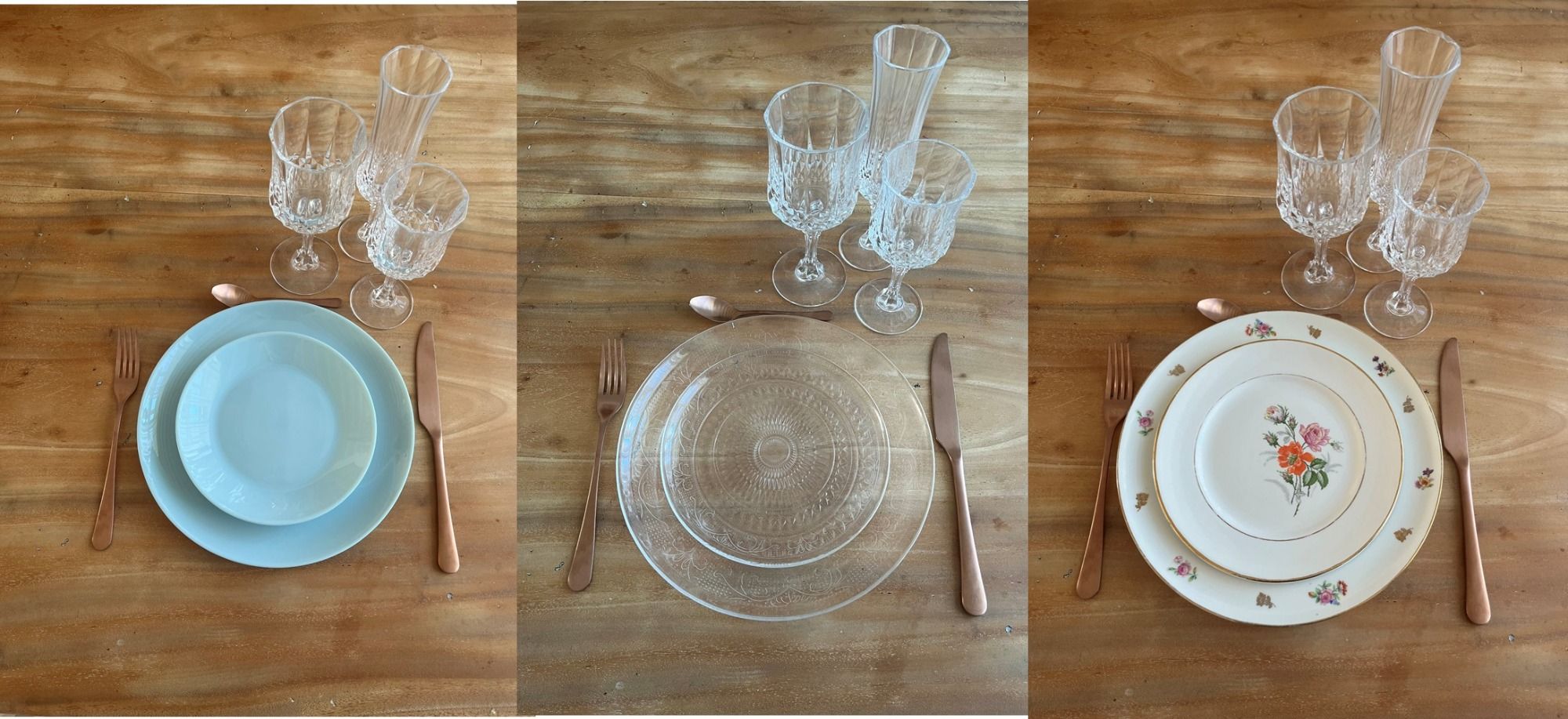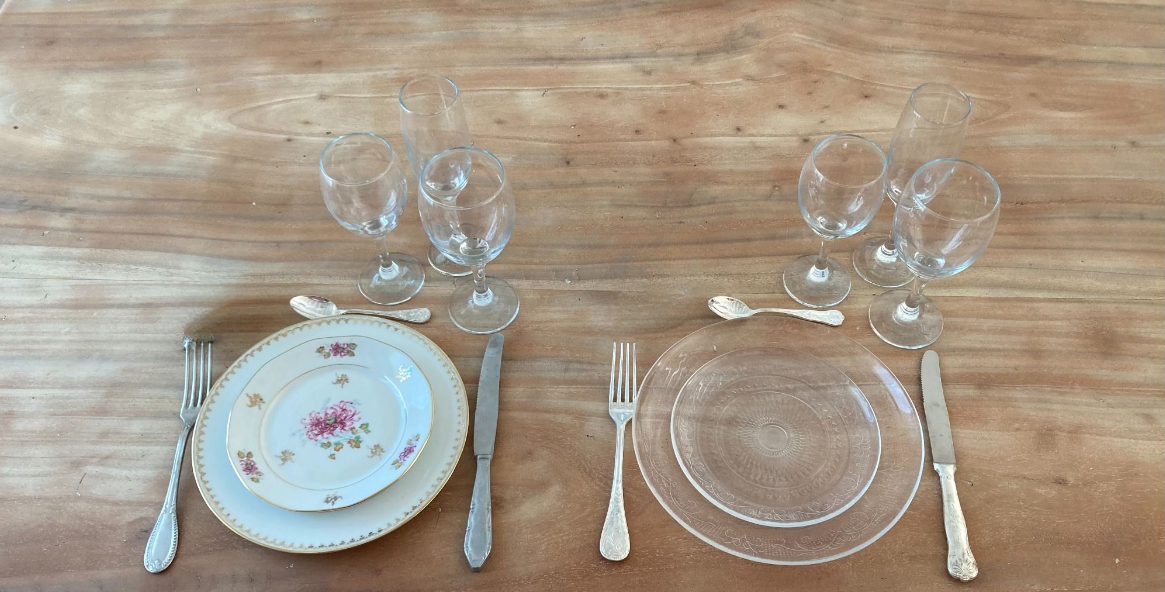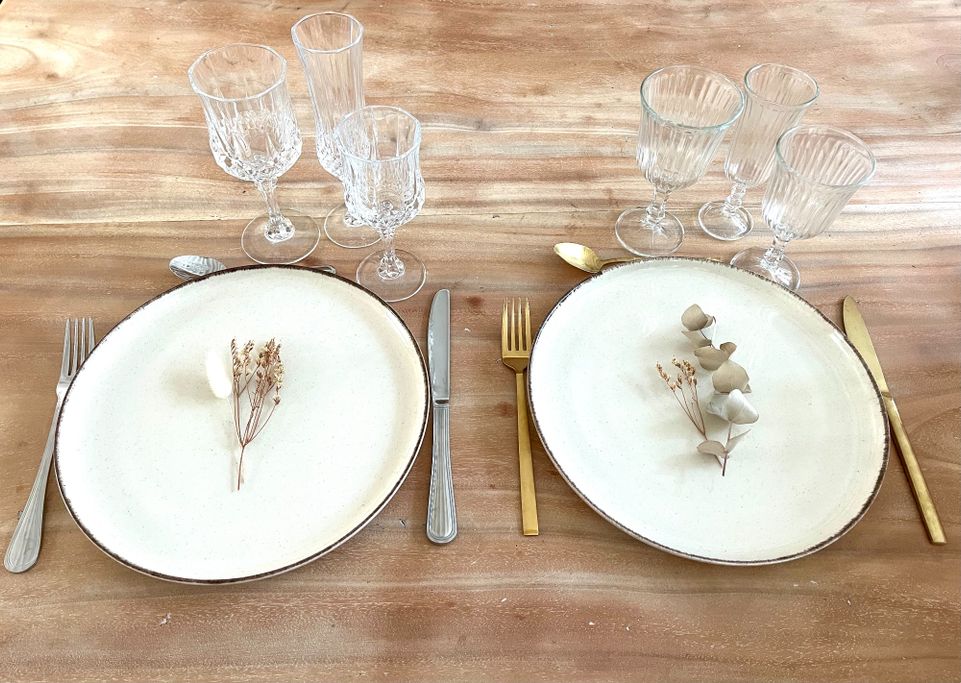 Nous disposons de trois gammes de couverts. Les Elégants, qui s'accorderont avec toutes vos tables. les Dorés pour une touche moderne et originale. Enfin, les Vintages dépareillés qui iront parfaitement avec les assiettes Fleuries.